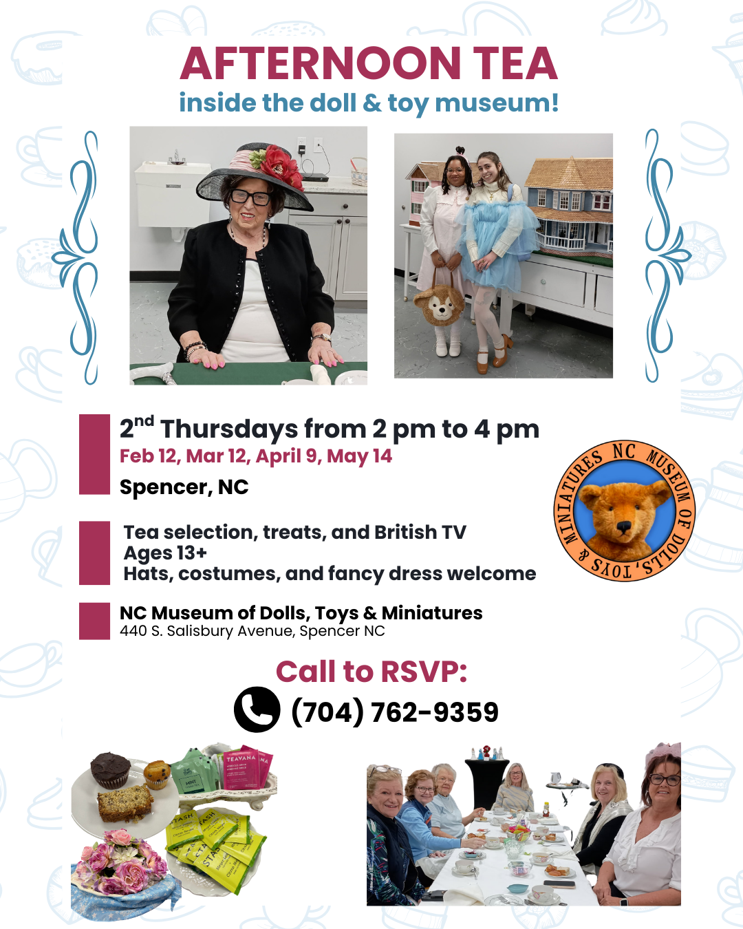 Join us for Afternoon Tea inside the museum – monthly Feb-May 2026!