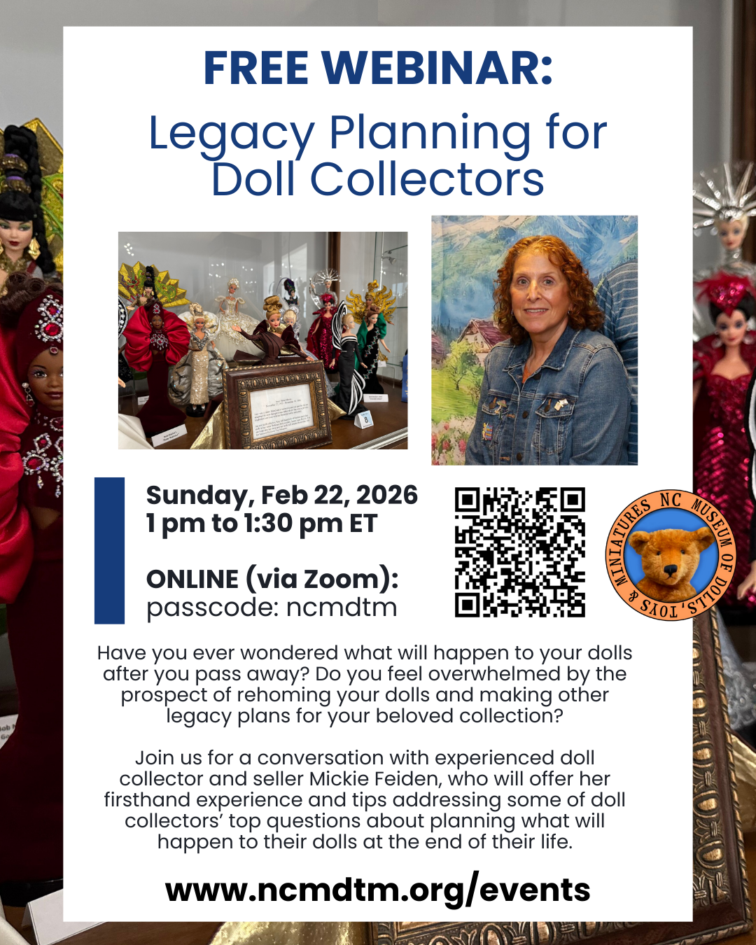 Join us for a free webinar on Sunday, Feb 22 from 1 to 1:30 pm ET to explore practical legacy planning for doll collectors.