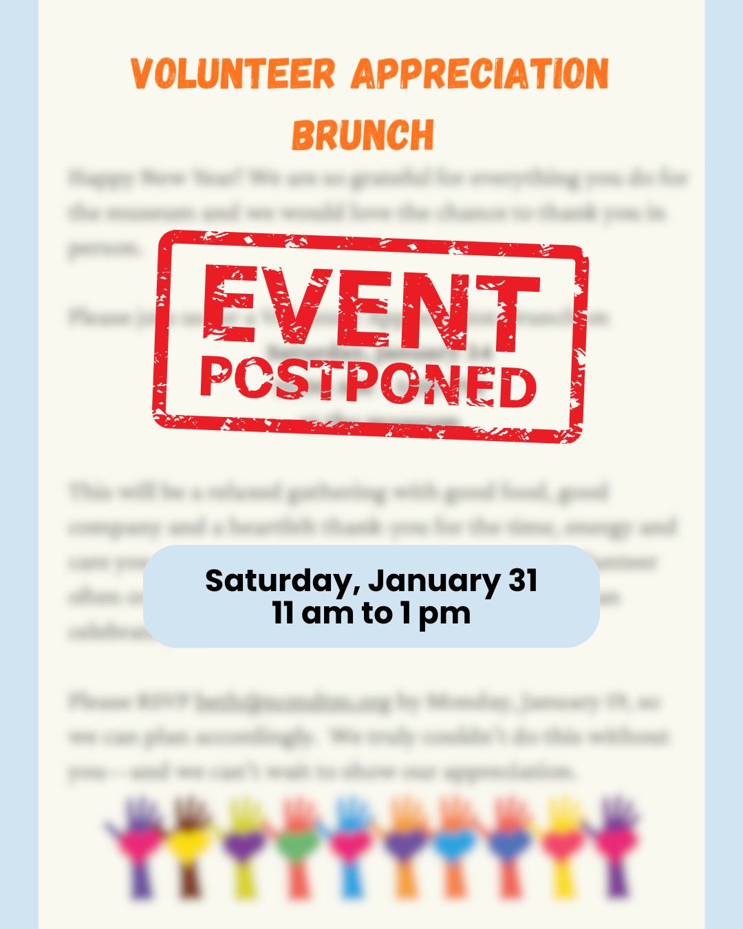 Join us for our first annual volunteer brunch at the museum on January 31, 2026 from 11 am to 1 pm.